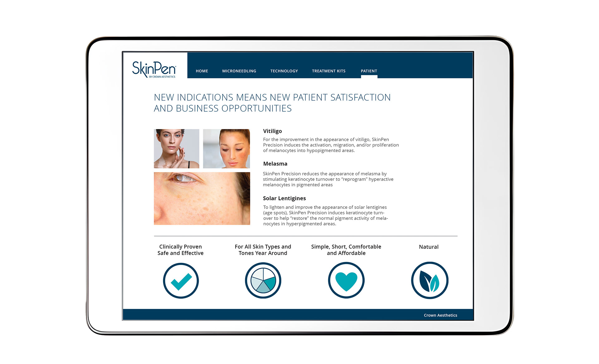 SkinPen® Precision is a global multi award winning system by Crown Aesthetics that uses a process called “collagen induction therapy” to improve skin discoloration (melasma), acne, and surgical scars.